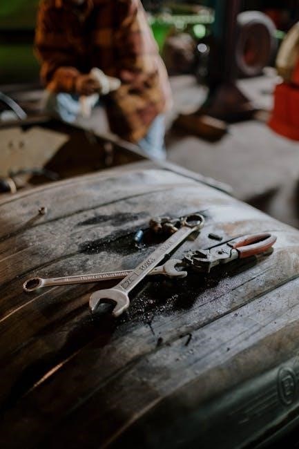 Support the vehicle securely with jack stands; never rely solely on a jack. Properly dispose of fluids like brake fluid and coolant. Prioritize a clean and organized workspace to prevent accidents and ensure accurate repairs, referencing the manual’s guidance for each step.